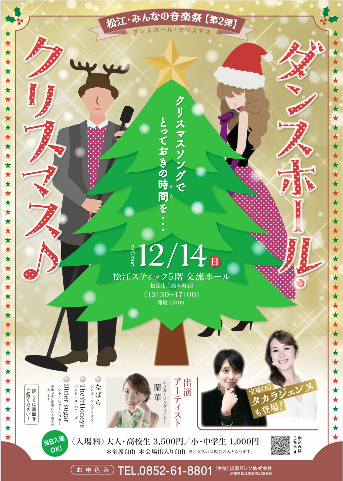 NHK朝ドラ「ばけばけ」の舞台て盛り上がる島根県松江市のクリスマスイベントに出演します。当日はクリスマスソングも歌う予定です。お楽しみに♪